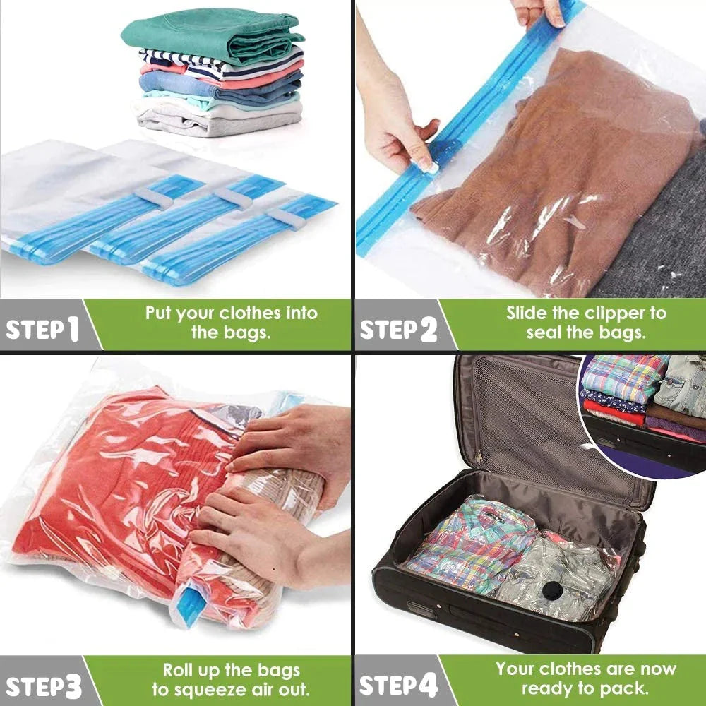 - Bonus for all Travellers & Backpackers. So, if you're traveling and want to travel light, these Vacuum Storage zip lock bags will help you save MOST of your luggage space with MORE items you can pack. So, repacking for the return trip to your beautiful home won't be a hassle anymore